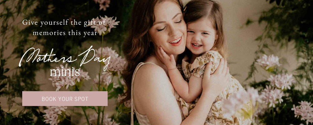My Mothers Day Minis in 2026 weill be unfolding in a light-filled studio, wrapped in a bespoke floral installation by one of Brisbane’s most loved event florists – Orphic Arcane Floristry. Designed to focus on the quiet magic of motherhood. Taking place in mid April, these sessions are a heartfelt way to capture your motherhood journey at any stage and offer the opportunity to make connections with fellow mamas and their little ones. Book your spot now here.